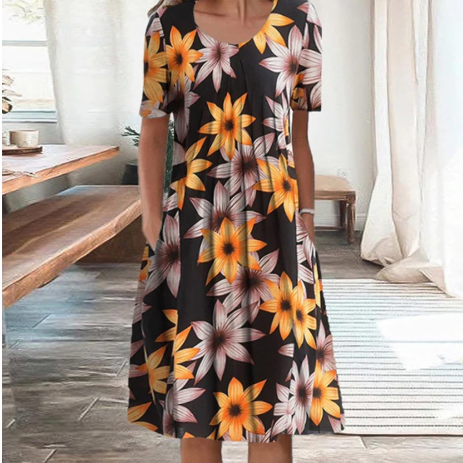 Women S Summer Casual Fashion O Neck Short Sleeve Print Pullover Loose Dress Walmart Com