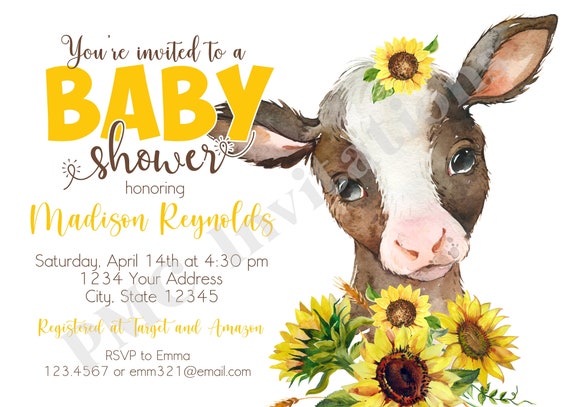 Buy Custom Printed 5x7 Watercolor Sunflower Cow Baby Shower Online In India Etsy